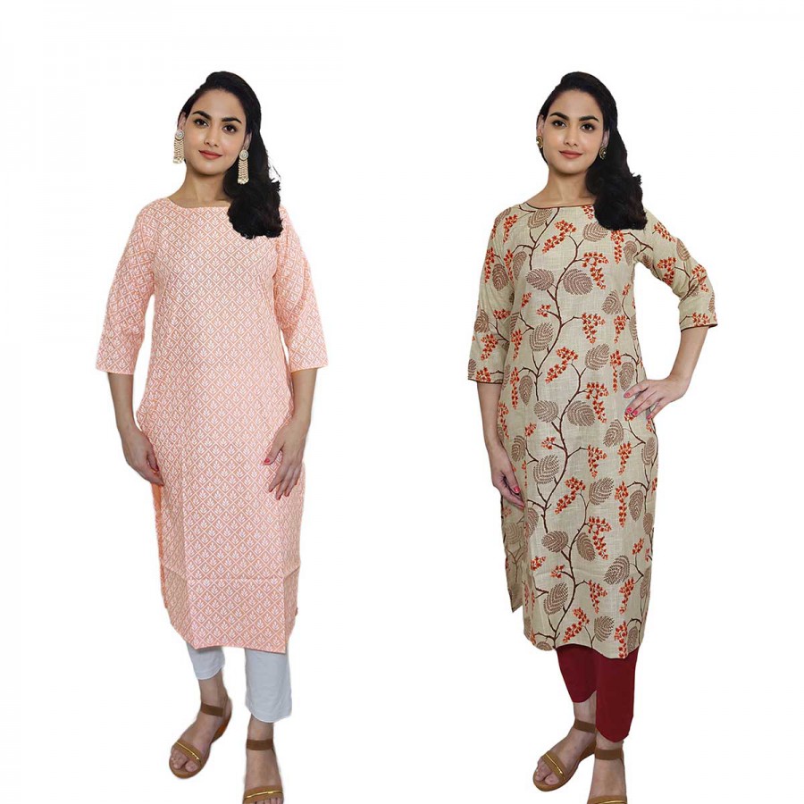 Women Printed Cotton Straight Kurti ( Pack of 2 )