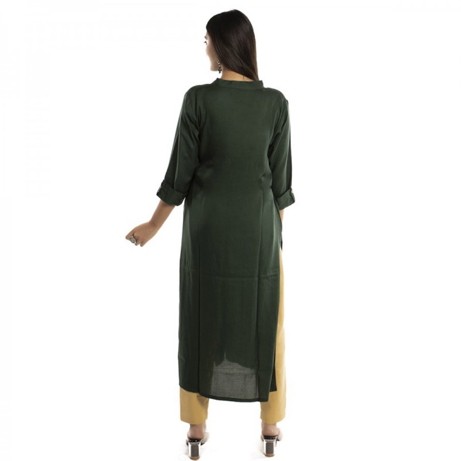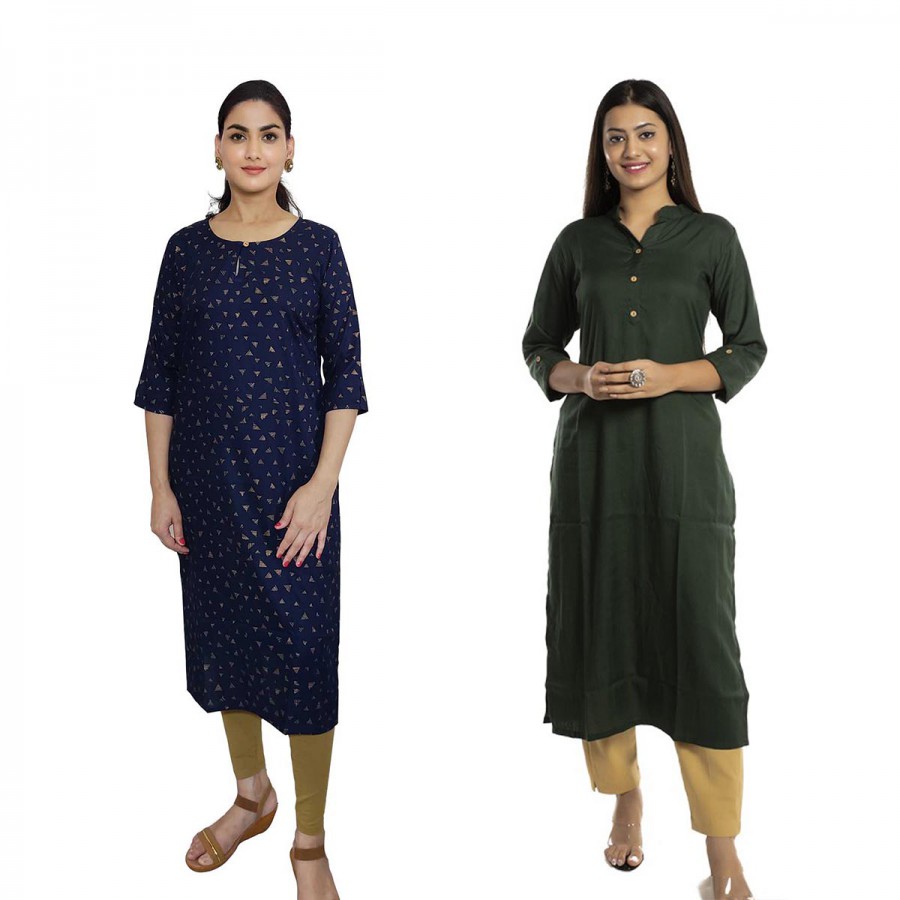 Women Printed Rayon & Solid Rayon Straight Kurti ( Pack of 2 )